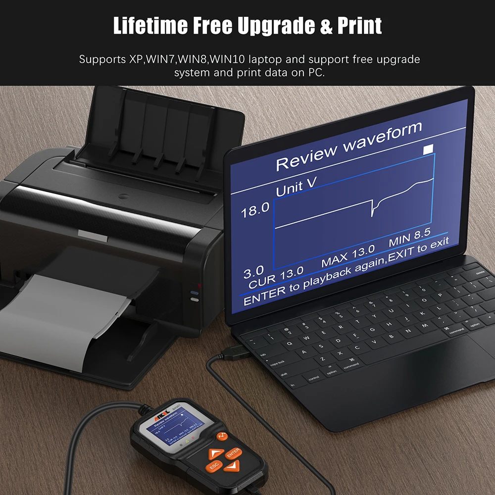 Supports XP, WIN7, WIN8, WIN 10 laptop and support free upgrade system and print data on PC.
