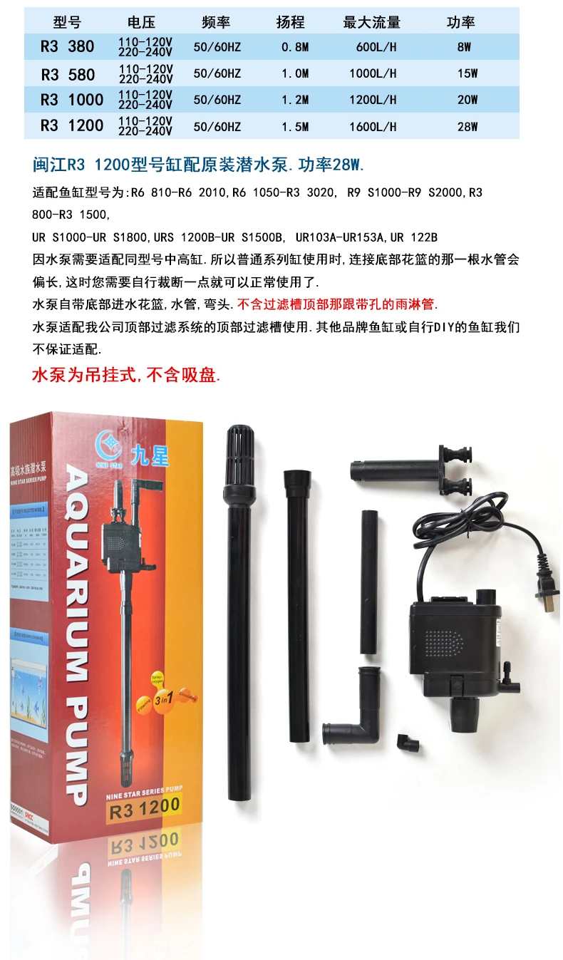 Погружной насос для аквариума, многофункциональный водяной насос для аквариума, кислородный насос для аквариума с бесшумным фильтром R3 380/R3-380