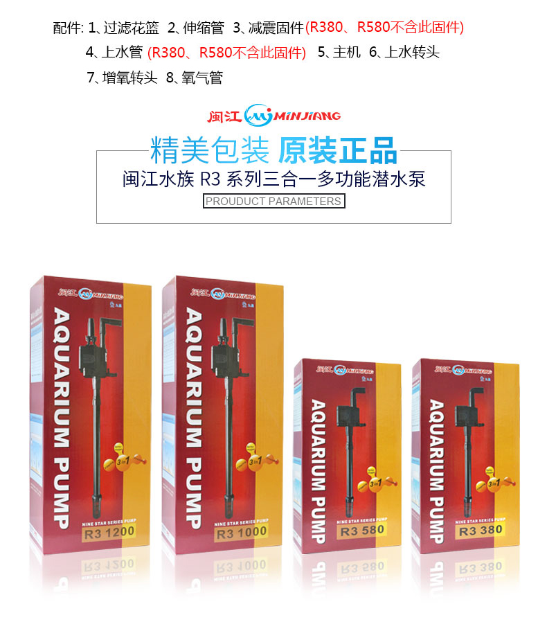 Minjiang аквариум оригинальный водяной и воздушный насос r3 380 580 1000 1200 погружной насос аэробный тихий Фильтрующий насос