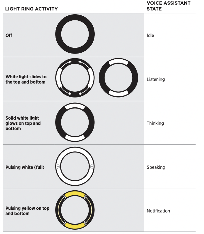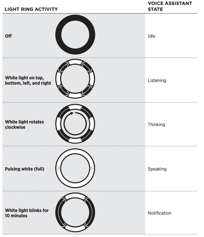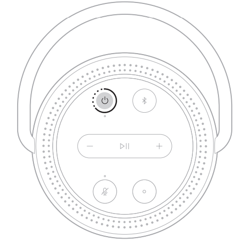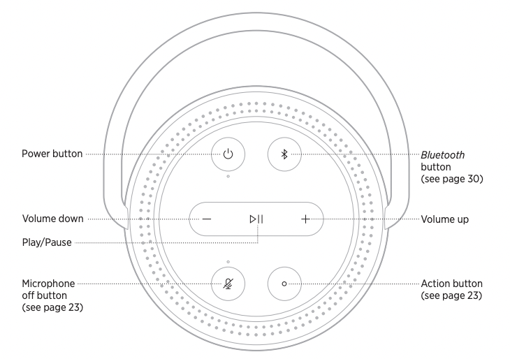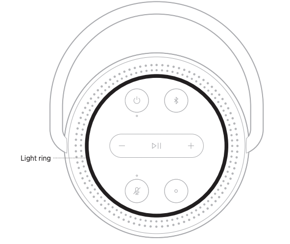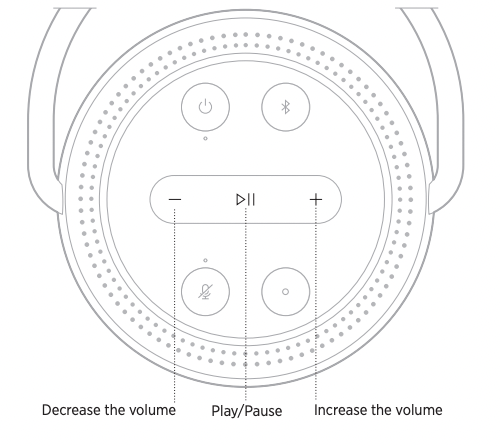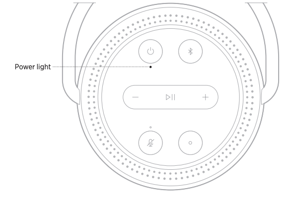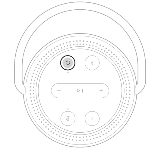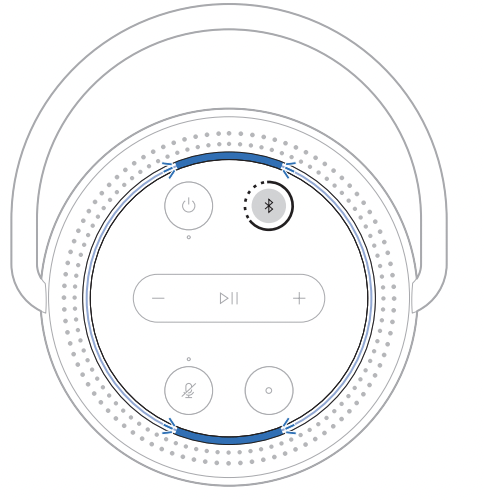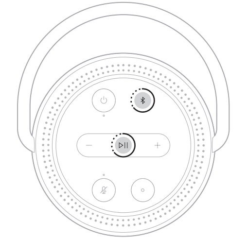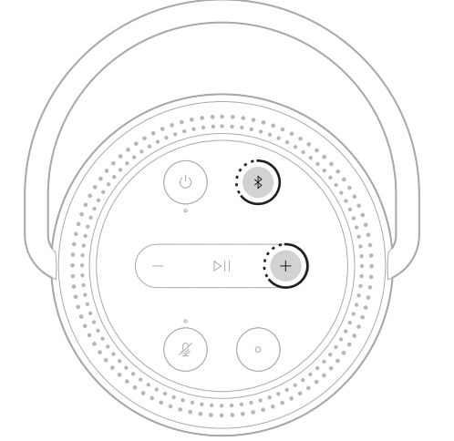 Press and hold the Volume up button + and the Bluetooth button Bluetooth for 10 seconds until the light ring fills with white light.