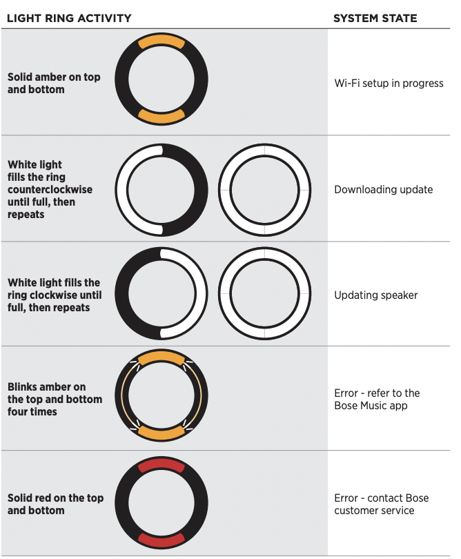 Solid red on the top and bottomSolid red on the top and bottom Error – contact Bose