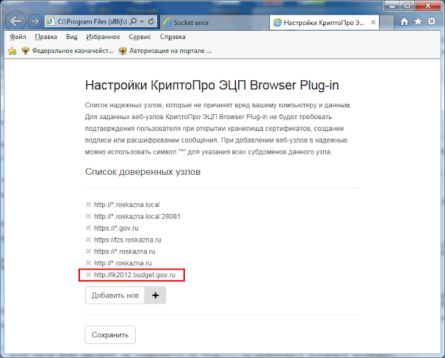 - Internet Explorer: добавить в Надежные сайты — http://lk2012.budget.gov.ru и https://lk2012.budget.gov.ru