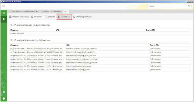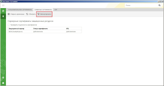 Инструкция по обновлению сертификата сервера TLS на АРМ пользователя