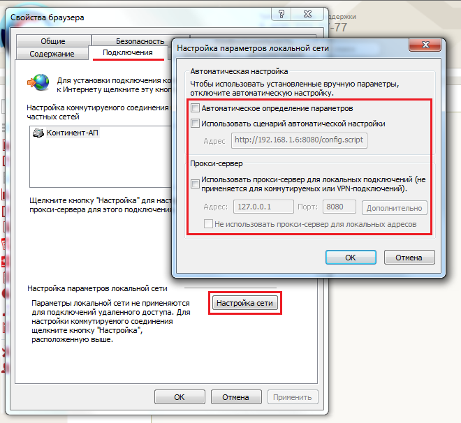 Лирика. Еще в Internet Explorer нужно отключить Proxy совсем: