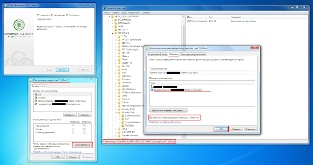 Лирика. В процессе установки может возникнуть ошибка доступа… Это мы уже проходили ранее. Нужно разблокировать ветку реестра (прям в процессе установки), изменить права на её изменения. По умолчанию владельцем ветки является «система», а софт устанавливается от имени пользователя. Поскольку на компах такого уровня пользователи должны быть в «Администраторах» (проверено практикой), то и доступ даём соответственно: