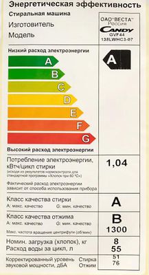 - Класс (стирка/отжим/энергопотребление): A/ B/ A-30%;