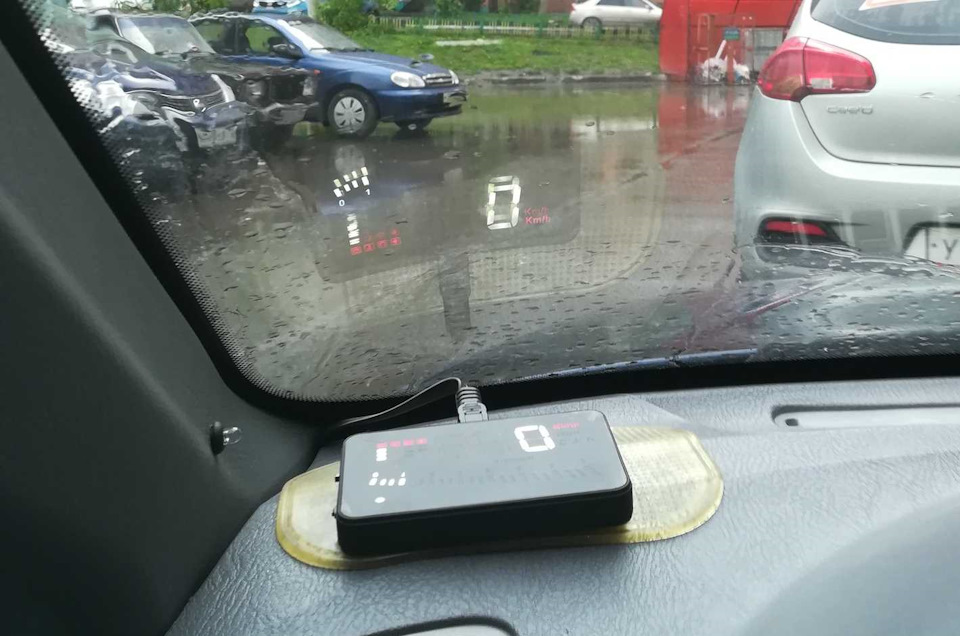 В силу не самого лучшего зрения и желании контроля скорости не отводя глаз озадачился установкой проектора на лобовое стекло.