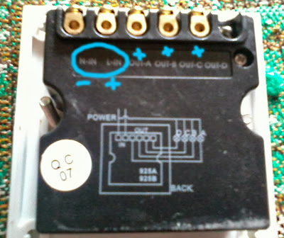 Вот так выглядит этот блок. Именно он принимает команды от беспроводного пульта и включает определённую секцию люстры (галогенный или светодиодный светильник, или же оба вместе). Обратите внимание на надписи и типовую схему подключения, которая изображена на корпусе блока.