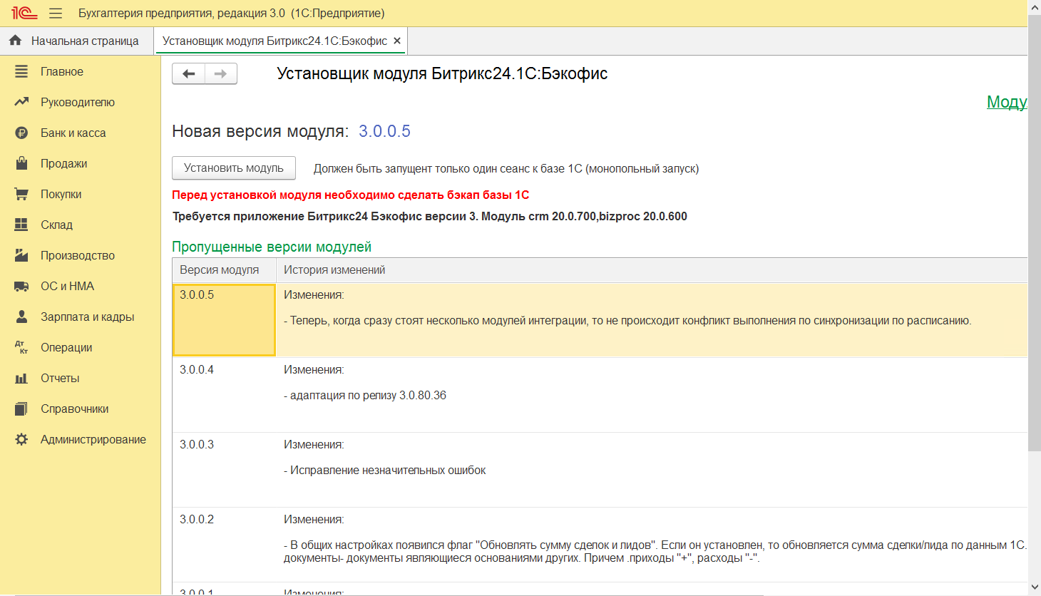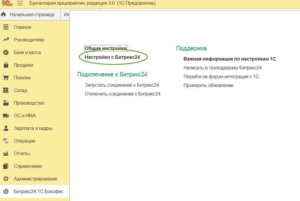 Обратите внимание! Модуль 1С: Бэкофис доступен только на тарифе Битрикс24 Компания.