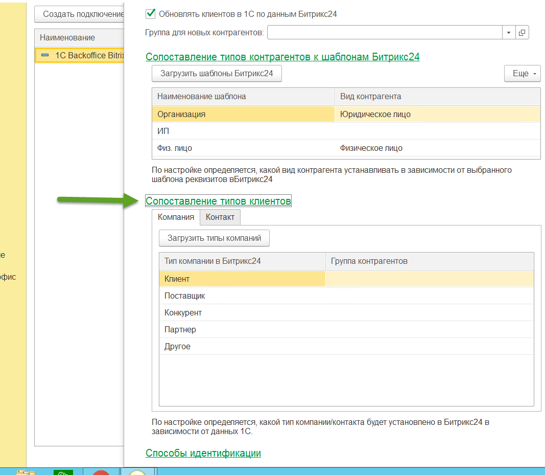 Также вы можете проставить сопоставление типов клиентов и способы идентификации.