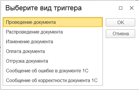 Настроить Триггеры. Из 1С в Битрикс24 можно добавить 7 триггеров для 10 типов документов 1С.