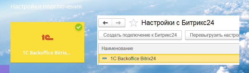 Вы сможете отслеживать статус соединения на портале Битрикс24. Для этого откройте меню «1С + CRM Битрикс24» и посмотрите в нижнюю часть страницы, под заголовок «Настройки подключения». На каждое созданное соединение с Бэкофис появится кнопка. Если она желтая, соединение работает.