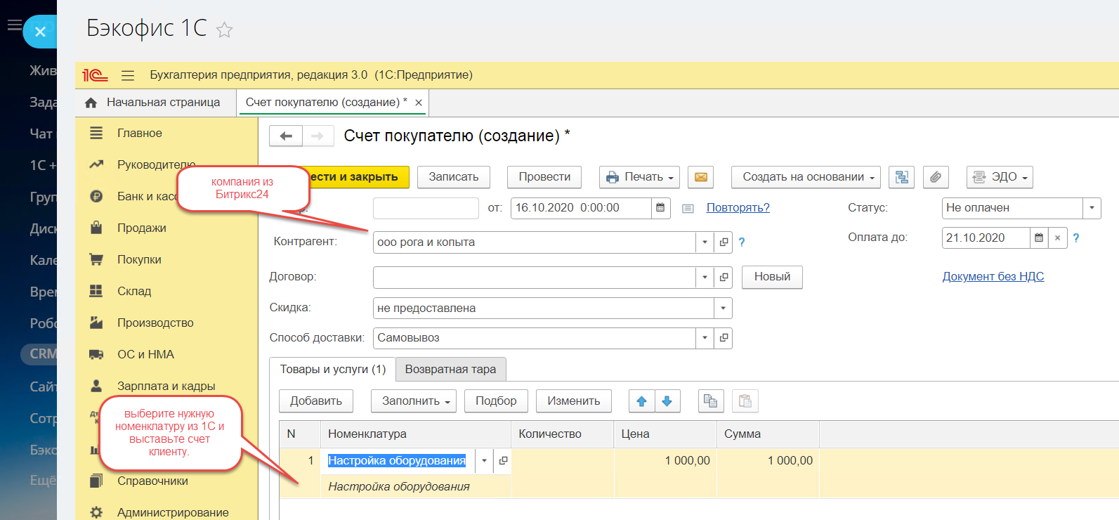 Работа с модулем 1С: Бэкофис в Битрикс24