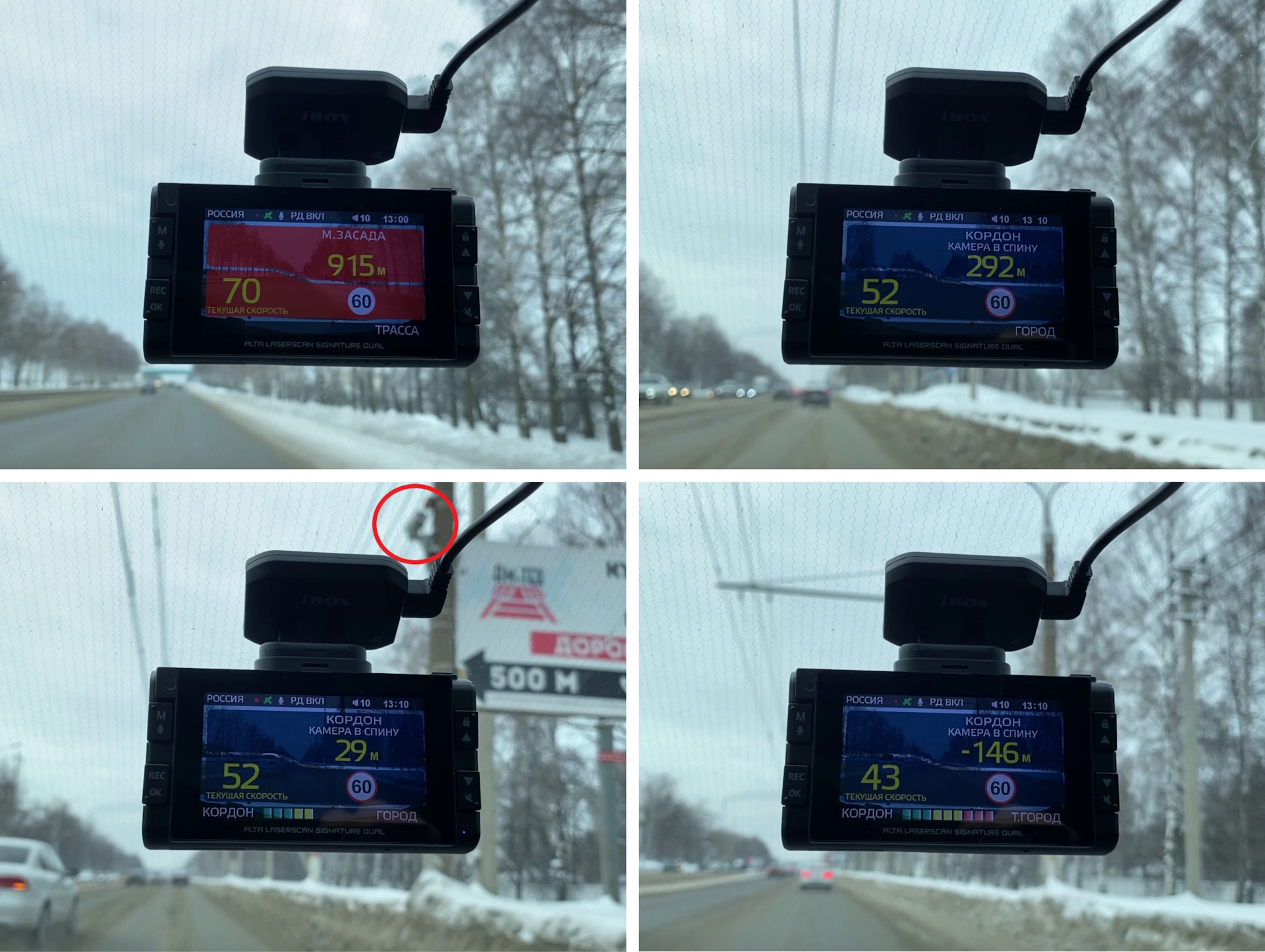 – Если между двумя камерами будет установлен мобильный или стационарный радар, iBOX Alta LaserScan Signature Dual корректно оповестит о данном радаре и продолжит информирование о контроле средней скорости.