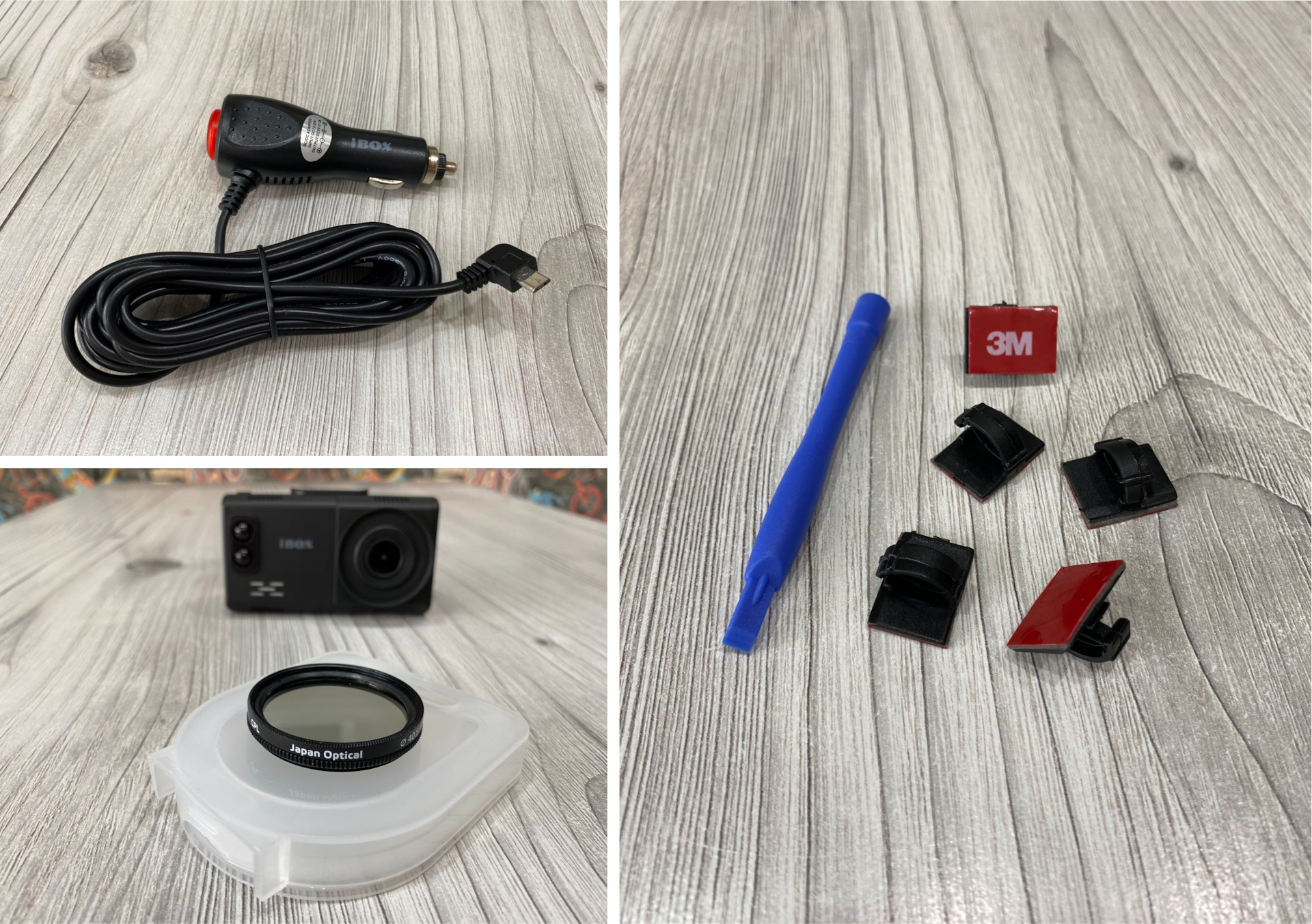 Адаптер питания очень хорош тем, что кроме питания комбо-устройства, дает еще порт USB, который можно задействовать для зарядки смартфона или питания навигатора, если это отдельное устройства. Картридер самый обычный, но с лого производителя, даже такую мелочь не упустили. CPL-фильтр с виду просто затемненное стекло, как оно работает мы проверим непосредственно на видео.