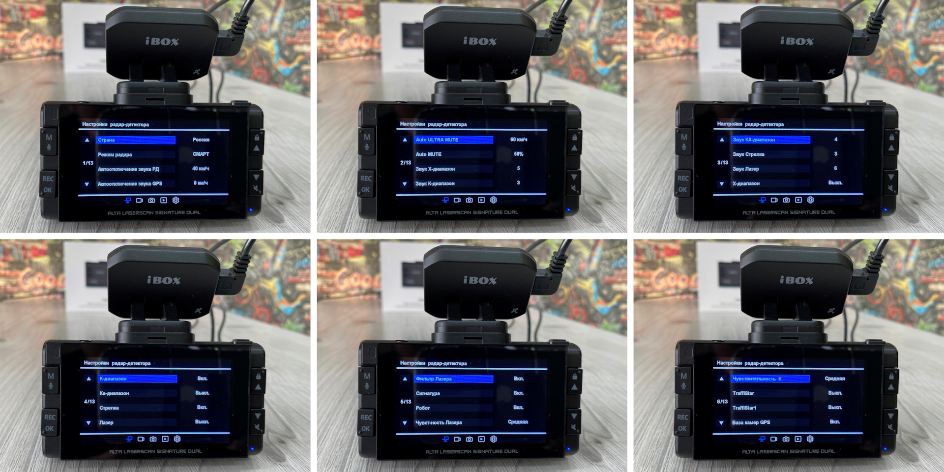 Экран имеет отличную читаемость и данные на нем прекрасно видны, все благодаря IPS экрану. Настроек у iBOX Alta LaserScan Signature DUAL предостаточно, но если вы хоть раз видели их в других подобных устройствах, то вам они все покажутся знакомыми. Львиная доля выделена для радар-детектора, в том числе звуковых оповещений, для себя, я выставил более громкое оповещение.