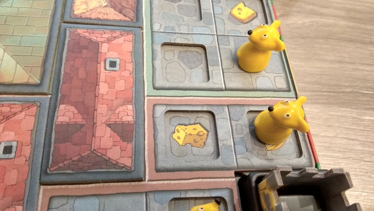 Собственно, на этом и построены две основные тактики игры. Можно деловито запоминать, где какой сыр прячется, и отправлять своих разведчиков за добычей. А можно запоминать, где скрыты ловушки, и, передвигая тайлы, одного за другим сбрасывать чужих мышат в подземелья.