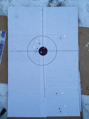 Поначалу поставил две мишени, одну на 100м, вторую на 50м. Отстрелял серию на 50м, все ушли мимо мишени.