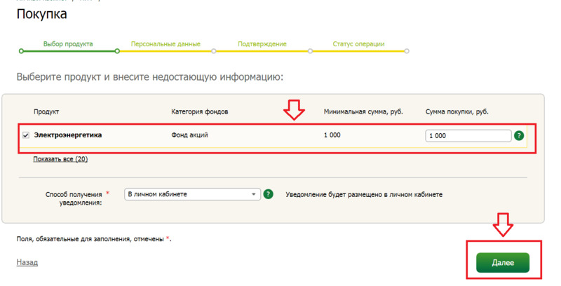 Чтобы произвести покупку паев, нужно явиться в отделение банка с паспортом и заполнить заявление, а затем осуществить оплату. В офисе можно сделать инвестицию на сумму от 15 тысяч рублей и выше (приобрести паи на меньшую сумму получится дистанционно). При личном посещении офиса гражданину выдадут бумажную копию договора.