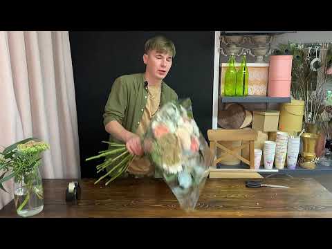 Как завернуть высокий букет в пленку