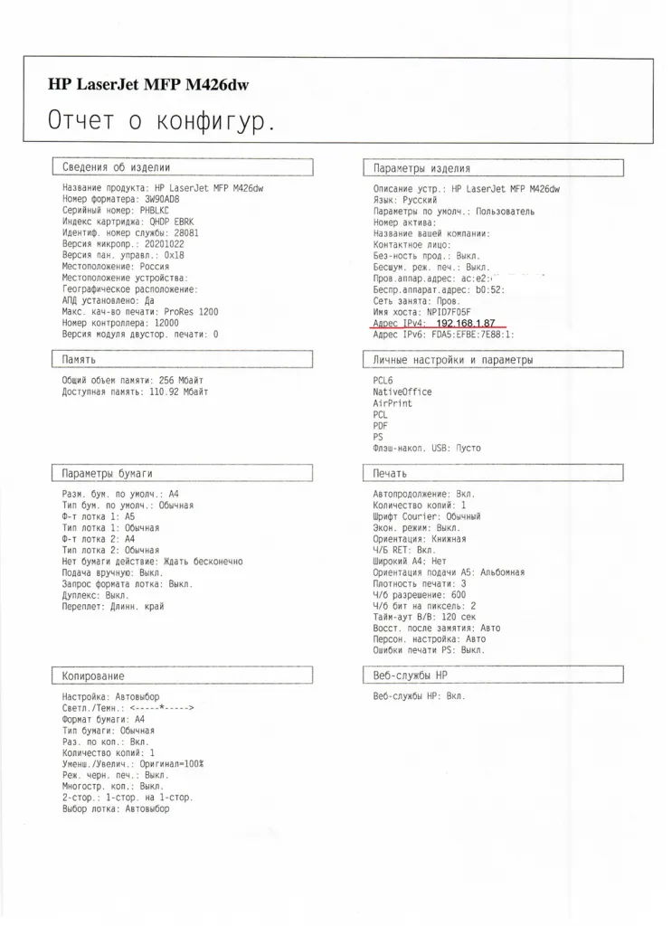 1. Узнать ip-адрес принтера в вашей сети. Посмотреть его можно в настройках сети на панели управления принтера, в распечатке состояния принтера или в меню настроек вашего роутера.