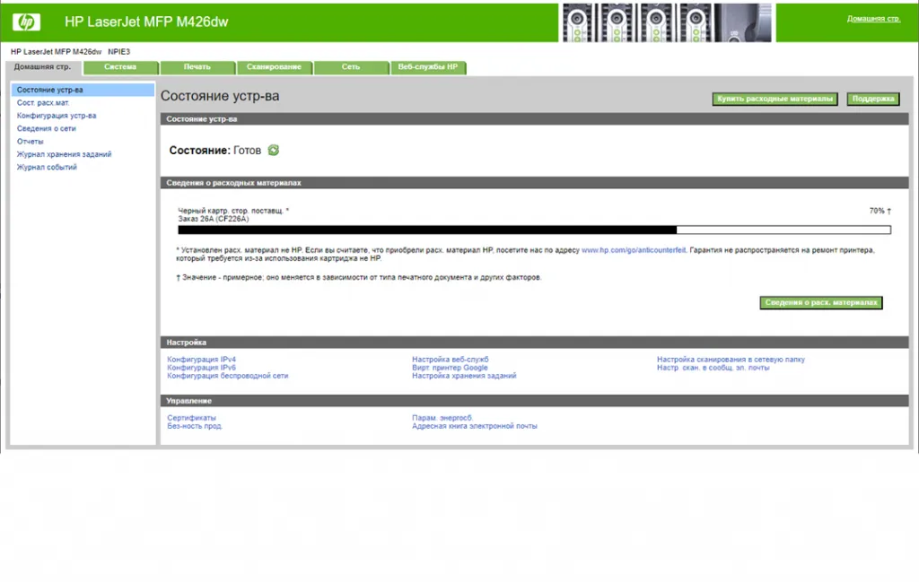 веб-сервер HP (EWS).
