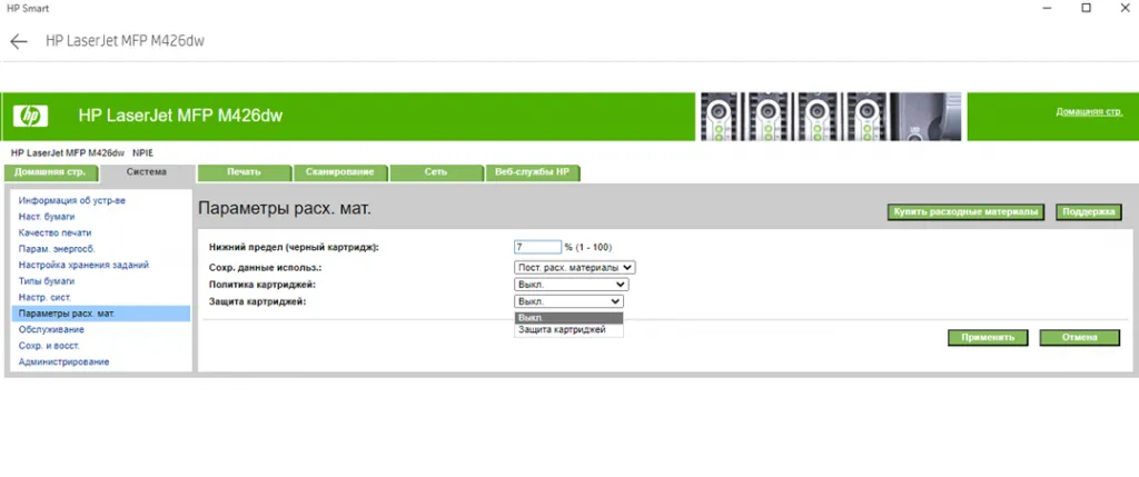 Как отключить защиту картриджей HP (включить-отключить настройка)