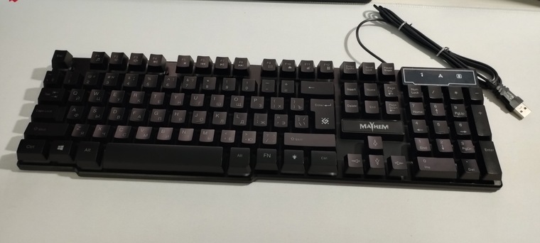 - Сначала подключите клавиатуру Defender Mayhem к компьютеру с помощью USB-кабеля.