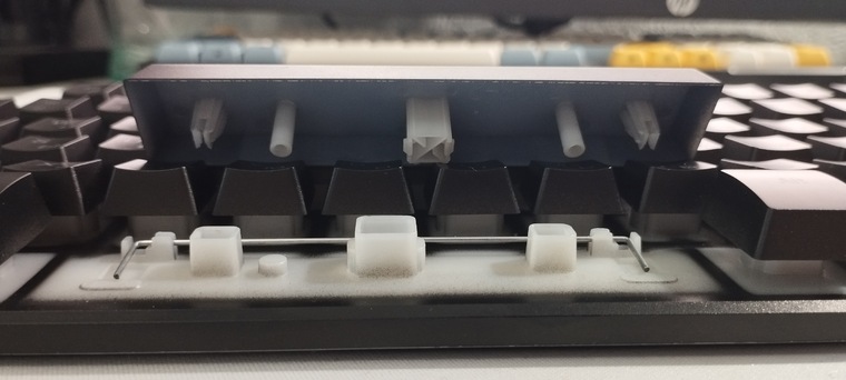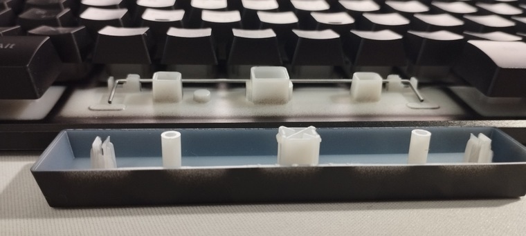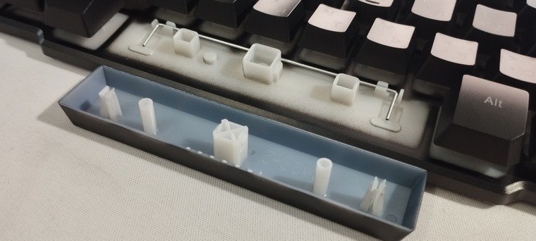 Внутри клавиатуры расположены самые обычные Costar стабилизаторы. То есть конструкция подразумевает одну металлическую палочку, держащую левую и правую стороны клавиш.