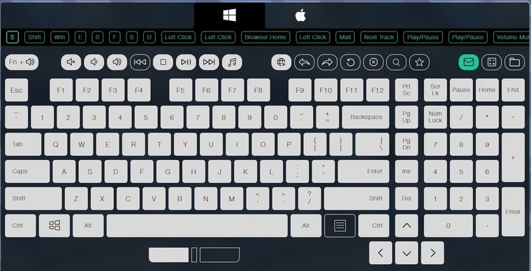 19 клавиш: Q, A, Z, W, S, X, E, D, C, B, Space, ↑, ↓, ←, →, Tab, Alt-L/V, Ctrl_L/F, Shift_L