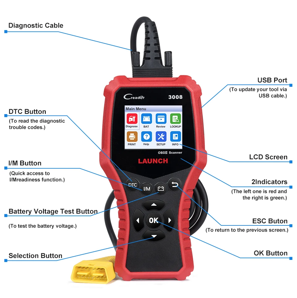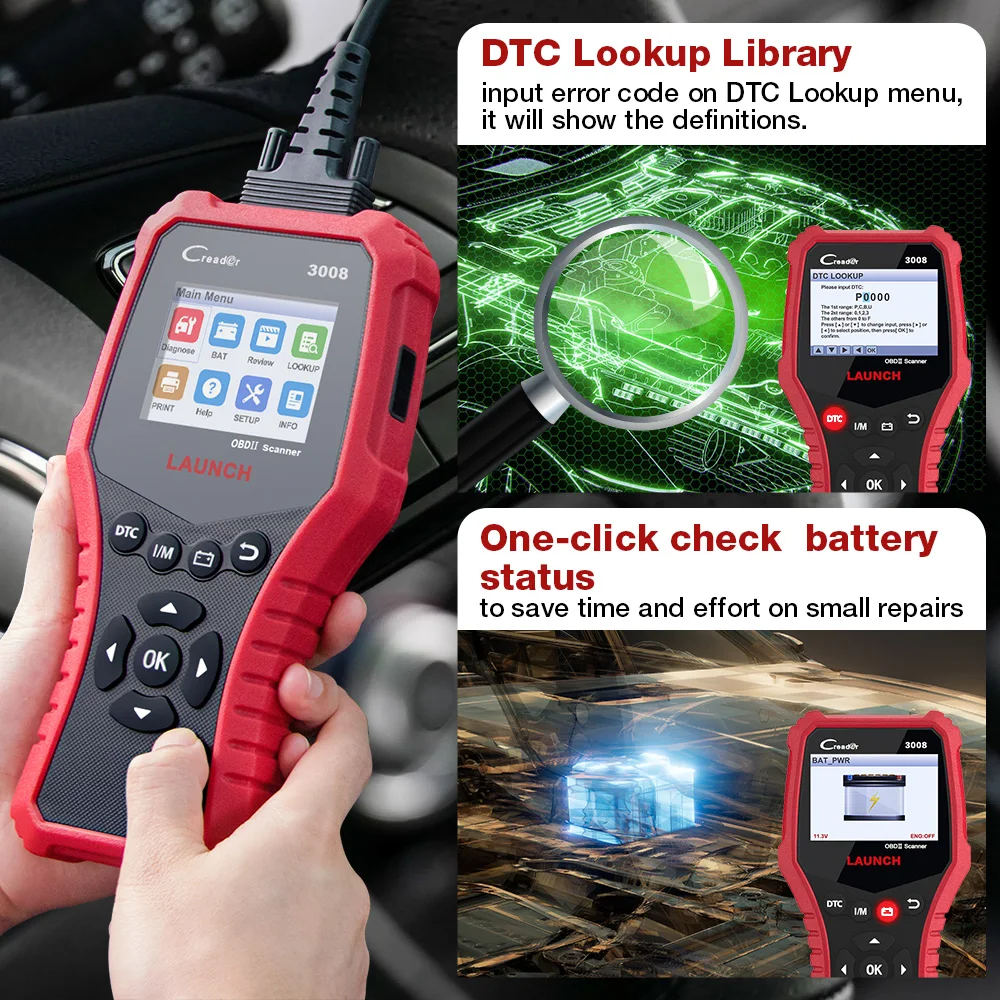 A. LAUNCH CR3008 OBD2 автомобильное диагностическое сканирующее устройство является универсальным диагностическим сканированием для нескольких транспортных средств, поддерживает все 10 режимов тестирования OBDII на всех совместимых с OBDII транспортных средств для полной диагностики.