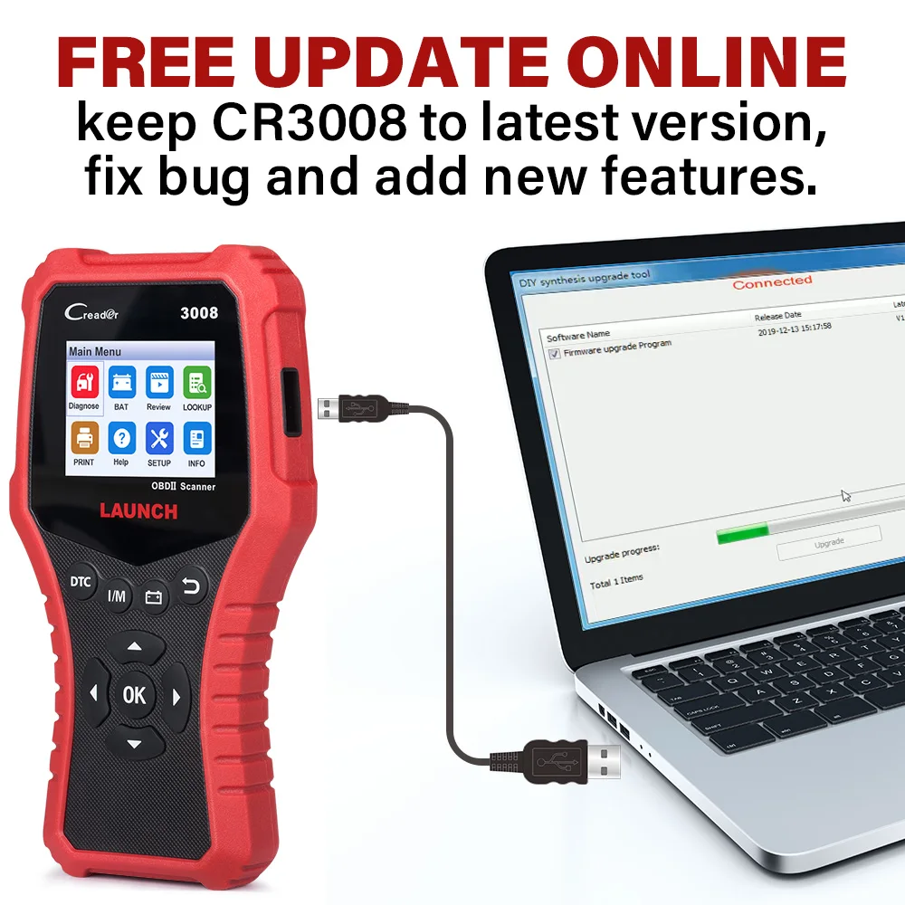 LAUNCH X431 CR3008 полный OBD2 сканер, считывание и удаление ошибок двигателя, тест на батарею, поток данных OBDII, поиск DTC, печать и бесплатное обновление онлайн