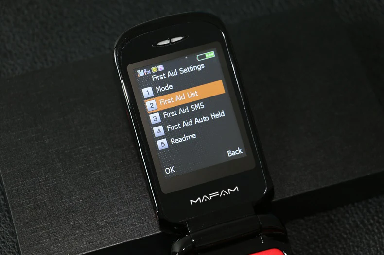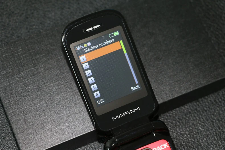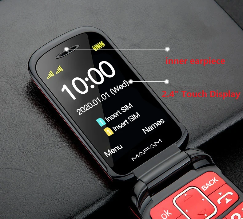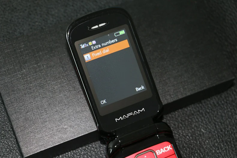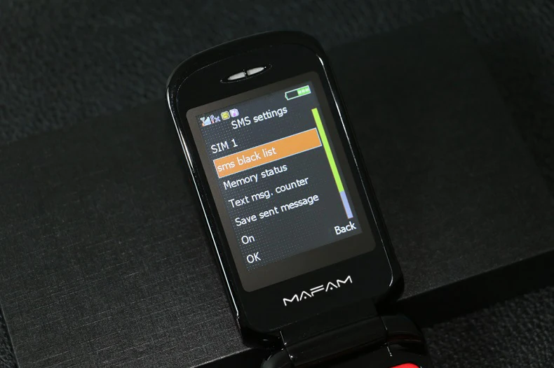 Телефон раскладушка Mafam F899 Flip оснащен двумя экранами — внешним на 1,4 дюйма и внутренний экран на 2,4 дюйма с разрешением 240×320 точек. Устройство поддерживает работу двух сим карт (Stardard SIM). Аккумулятор съемный, емкость составляет 2800 mAh.