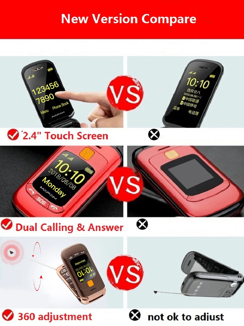 - Mafam F899 складной мобильный телефон с двойным дисплеем SOS Вызов Быстрый Циферблат большой экран фонарь большой ключ громкий звук FM Простота в …