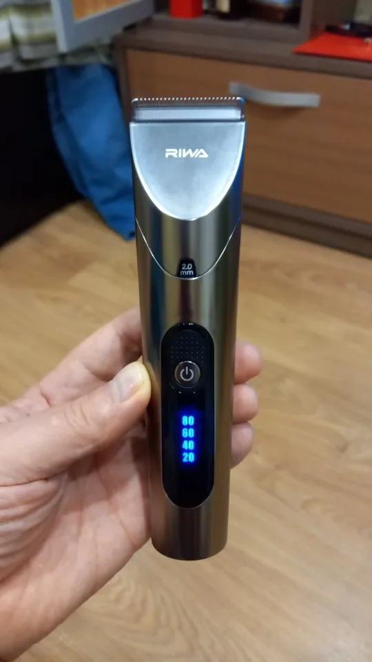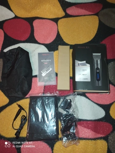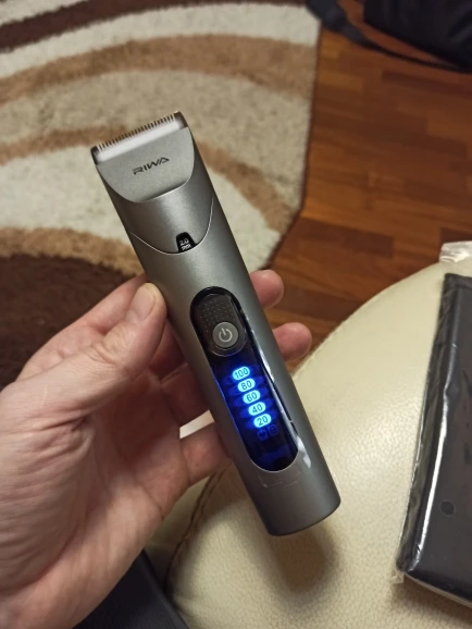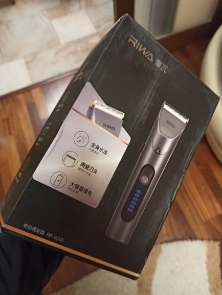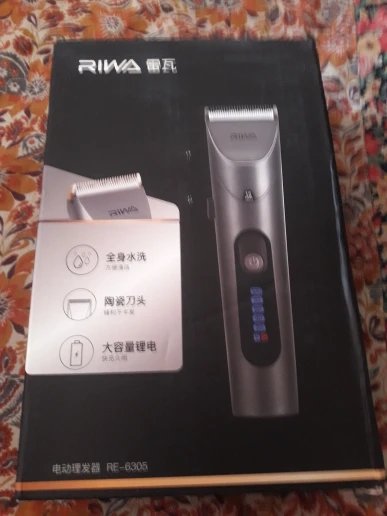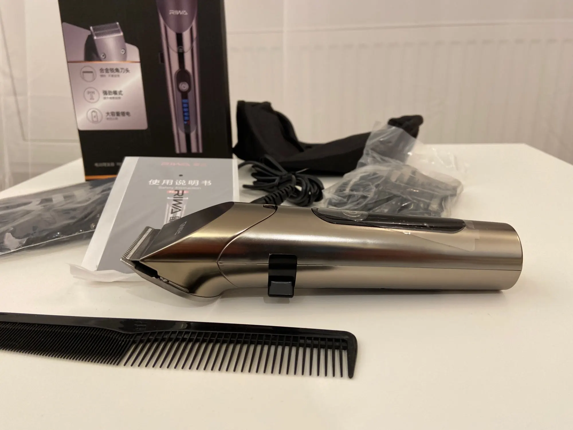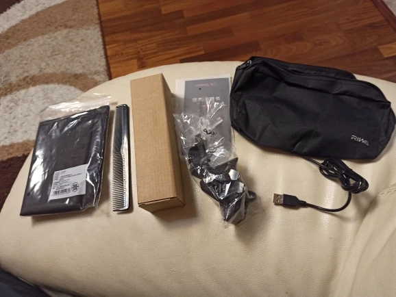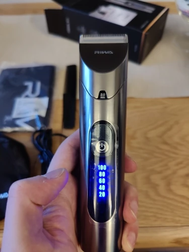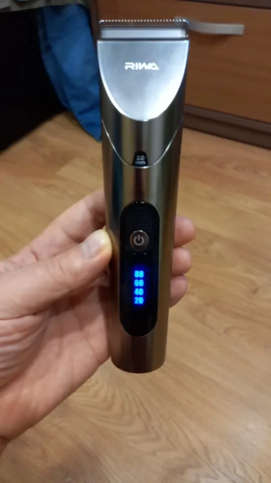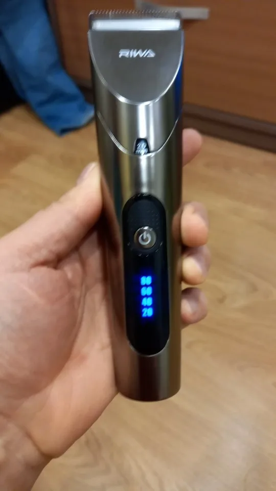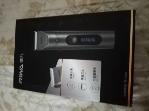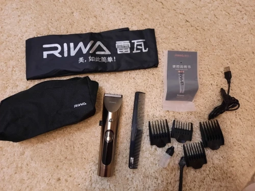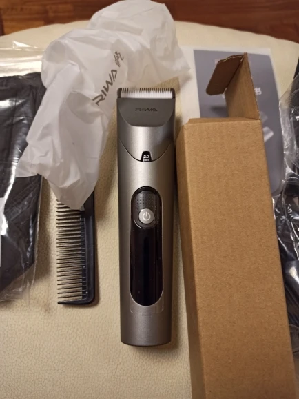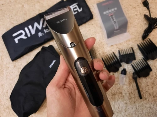 Нашел в упаковке сам Riwa K3, щетка, гребешок, зарядка, накидка и инструкцию на китайском языке. Сам триммер оказался упакован в еще одну картонную коробку. вместе с ним нашел гребешок и щетку. Машинка пришла заряженой, но батарея на дисплее уже мигала.