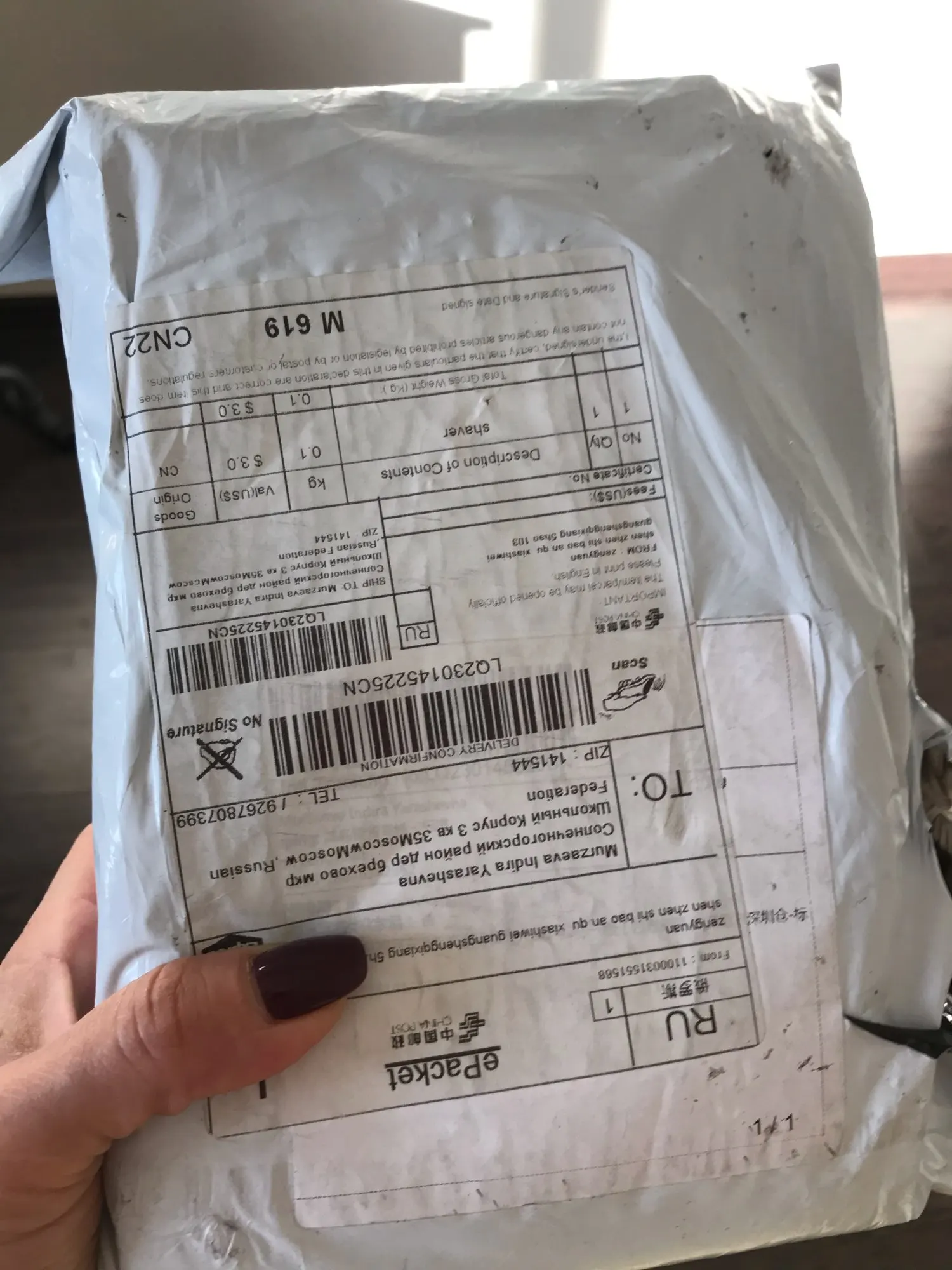 До Владивостока посылка шла почти два месяца. Принес домой курьер. Коробка была помятая, но внутри все цело и работает. Комплектация как на картинке. В целом продавца и триммер рекомендую. Но настройтесь на то, что придется подождать.