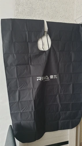 Также хочется отметить накидку. Накидка мне пришла черного цвета с логотипом компании. Ткань шелковистая, что при стрижке позволяет волосам скатываться по накидке на пол. Сделана качественно. Швы ровные.