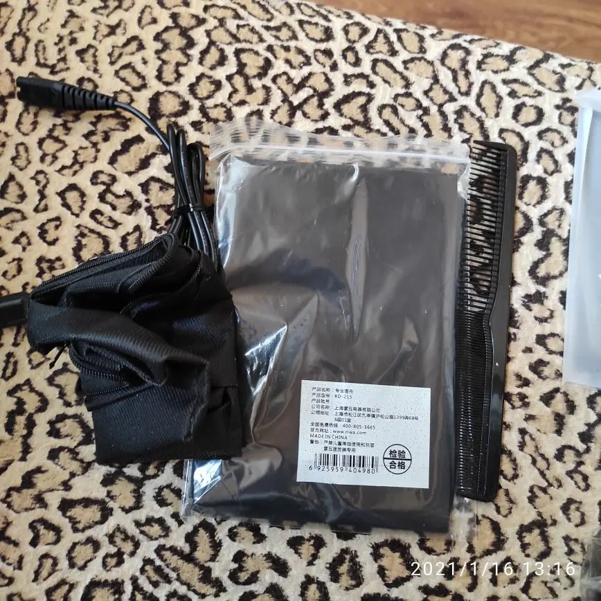 Насчёт дополнительных ножниц в комплекте. Мне сравнивать не с чем, но они острые и добротные. Брала больше для себя — равнять кончики волос. Фартук для стрижки просто песня. Надоело портить простыни:) сменные насадки держатся как надо.