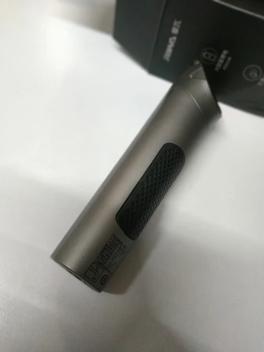 В руках машинка лежит очень удобно, как микрофон у Лепса на Песне года) Корпус сделан из пластика, окрашенного в серы металлик. На лицевой стороне кнопка включения, под ней LED-индикацией заряда.