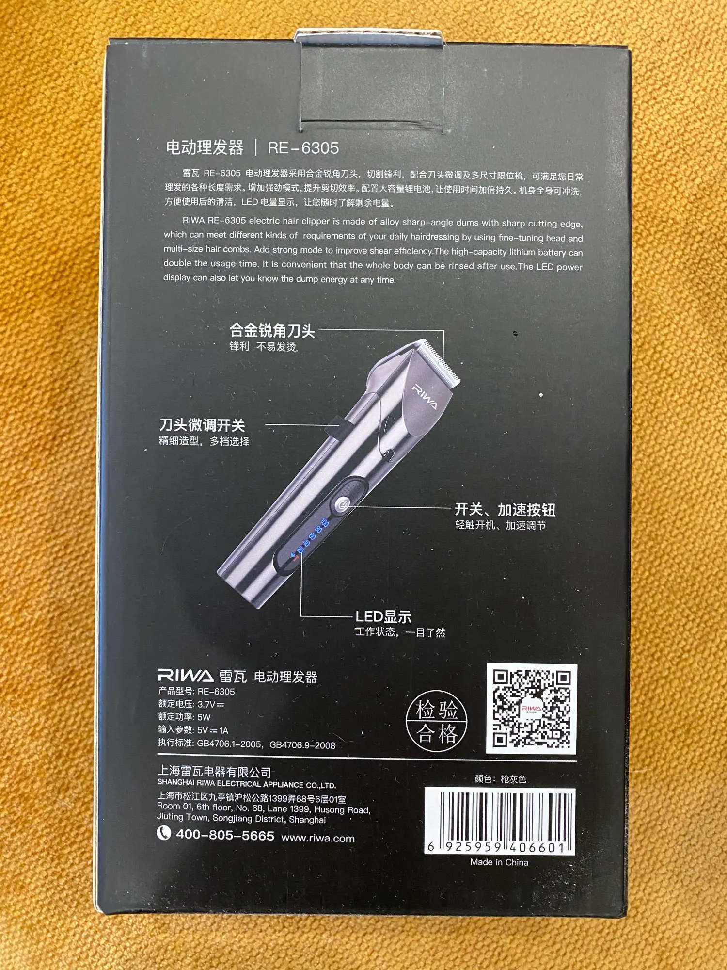 Бренд RIWAМодель RE-6305Гарантийный срок 1годВлагозащищенность IPX7Время зарядки аккумулятора: 240 минВремя работы от аккумулятора: 180 минПитание аккумулятор емкость: 2000 мА*чТип аккумулятора: LithiumМатериал лезвий: титановый сплавНасадки 5 шт: 0.5-2, 4-6, 7-9, 10-12, 16-18 ммГабариты упаковки: 20.5х12х7 смСтрана производства: Китай