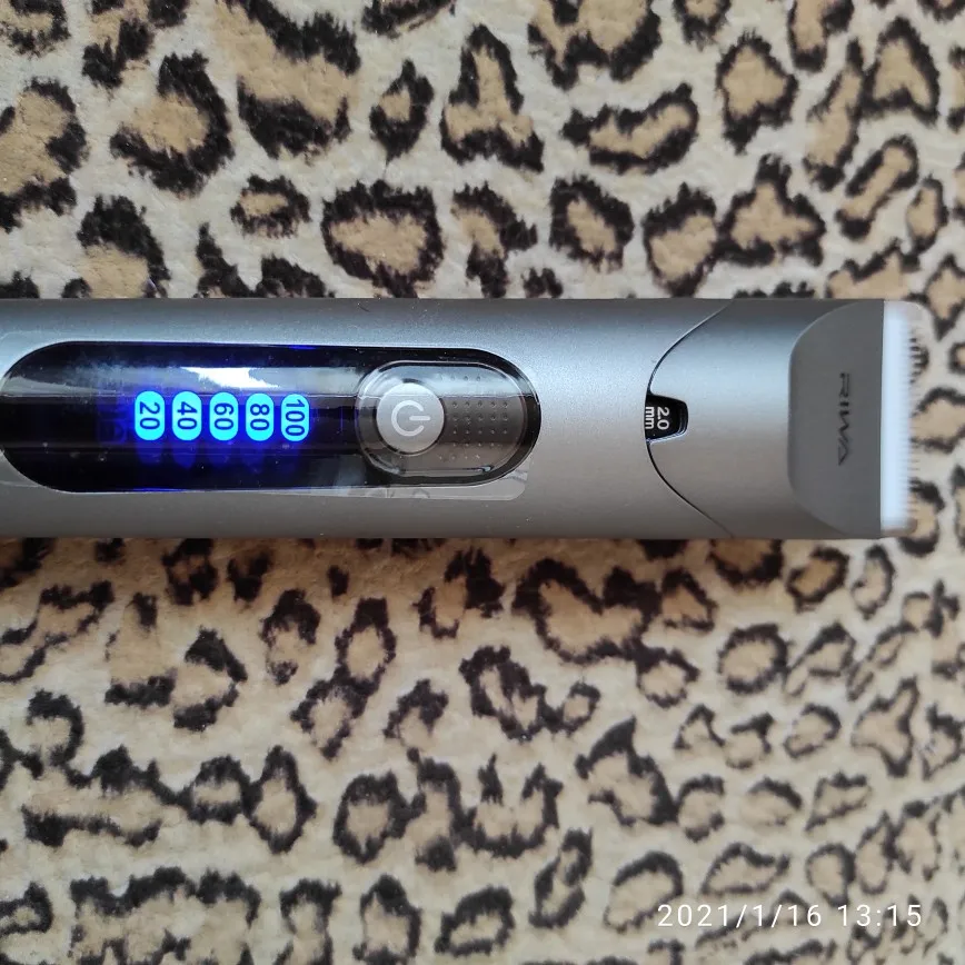 Машинка что надо. Положили ещё масло для ухода за ножами. Заряжена почти на 100 (100 мигает).