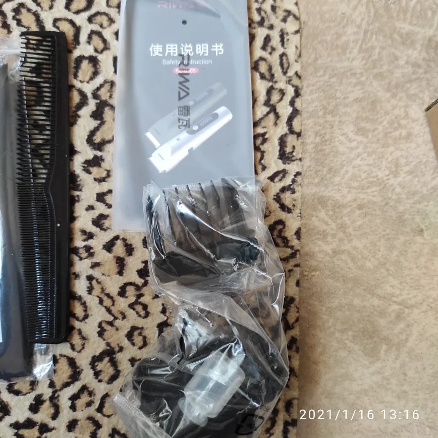 Вместе с машинкой для стрижки Riwa K3 продавец поставлял в комплекте накидку, гребешок, дополнительную насадку и зарядный шнур. Стоимость колебалась от 18.99$ до 24.50$.