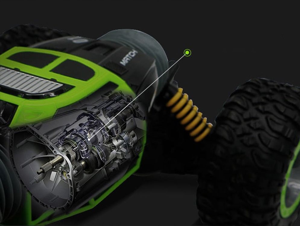 во-первых, машинка отличается своей уникальной возможностью трансформации — может быть гоночной машинкой, вездеходом, а само зрелище трансформации на ходу вообще завораживает своей невероятностью даже взрослого человека — как будто из какого-то фантастического фильма (она выполняет развороты на 360 градусов, умеет приподнимать кабину для лучшей проходимости по бездорожью, ездит боком, ездит вверх ногами);