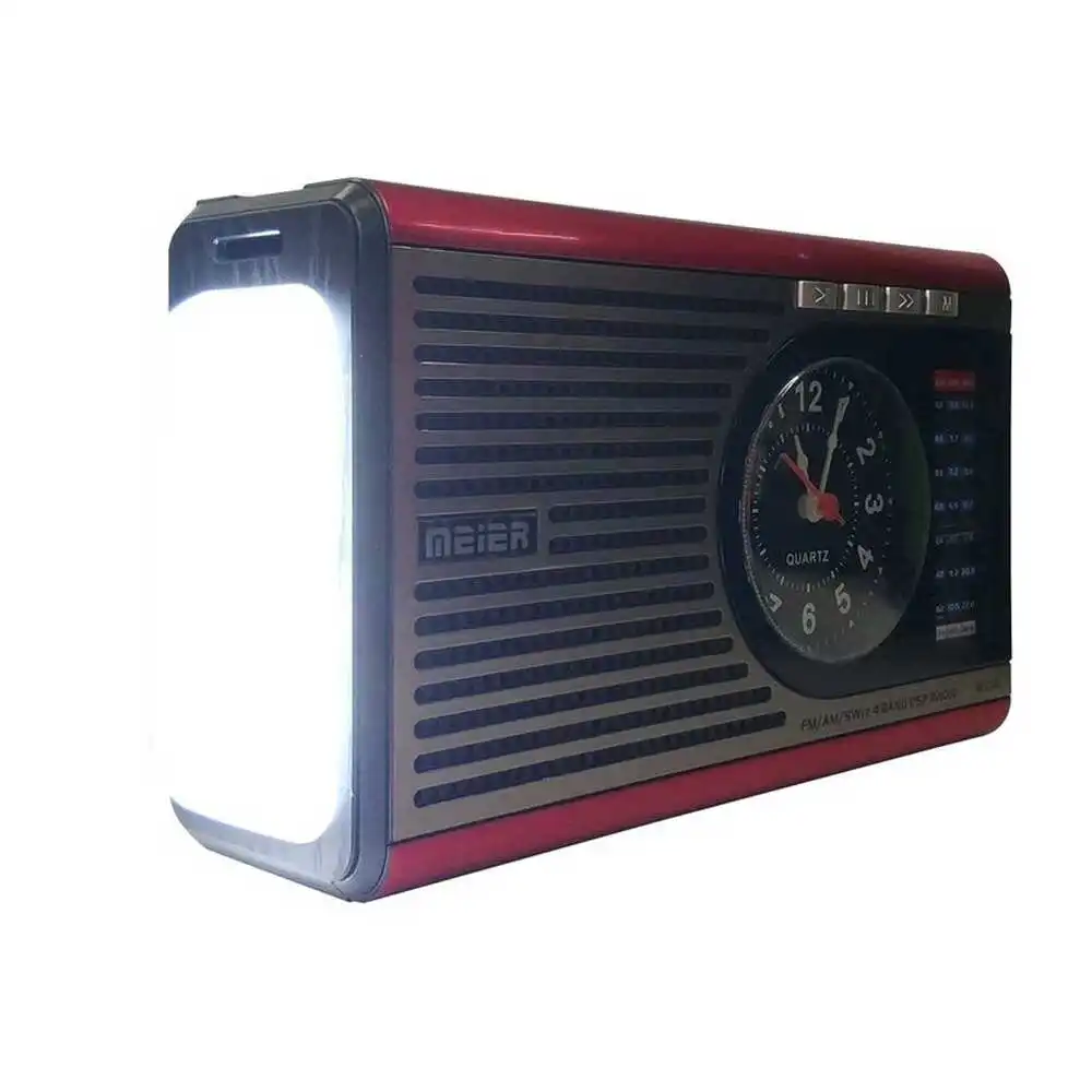 -20% Радиоприемник c MP3, фонариком и часами Meier M-U35 чёрный / USB, SD, AUX, Радио FM / Прихвати с собой в поход, путешествие, баню, пикник
