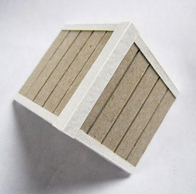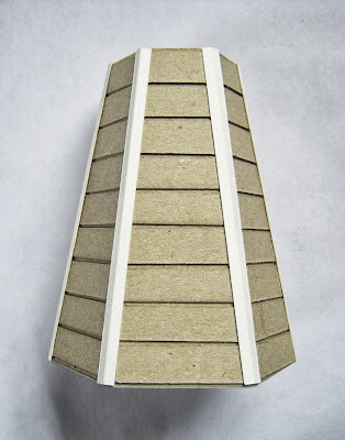 Чтобы не путаться, я отрезала дощечки и наклеивала их на основу по очереди, начиная сверху, с самых маленьких. Клею на момент-кристалл, расстояние между дощечками примерно 1-1.5 мм. Вот, что получается в итоге: