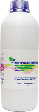 Метрасептол-А представляет собой раствор оранжевого цвета со слабым специфическим запахом. Препарат выпускают расфасованным по 1 л в канистры из полимерного материала с завинчивающимися крышками и контролем первого вскрытия и в шприцы Жане, снабженные полистироловой пипеткой для внутриматочного введения.