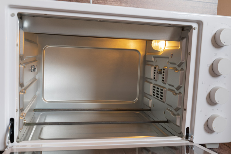 Уход за электропечью стандартный, разве что противень и поддон непросто очистить от жира и прочих загрязнений, и в целом нужно быть осторожным — серебристый материал очень чувствителен к чистящим средствам.
