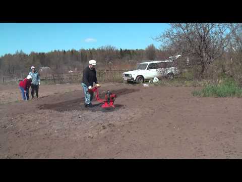 Перед началом вспахивания регулируется положение сошника, вспомогательные колеса поднимаются в верхнее положение. Для обработки плотного грунта рекомендуется снять штангу сошника и вспахивать почву последовательными движениями культиватора вперед и назад.