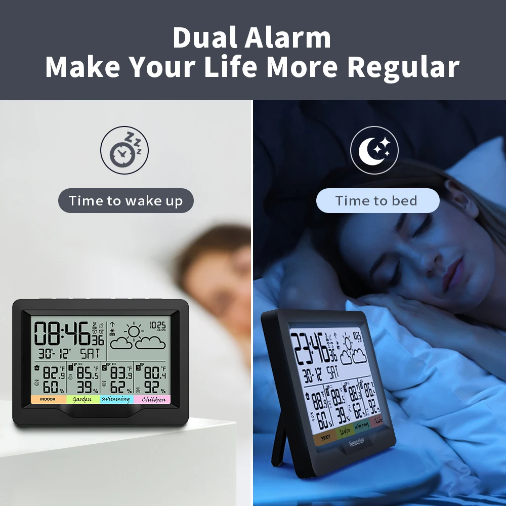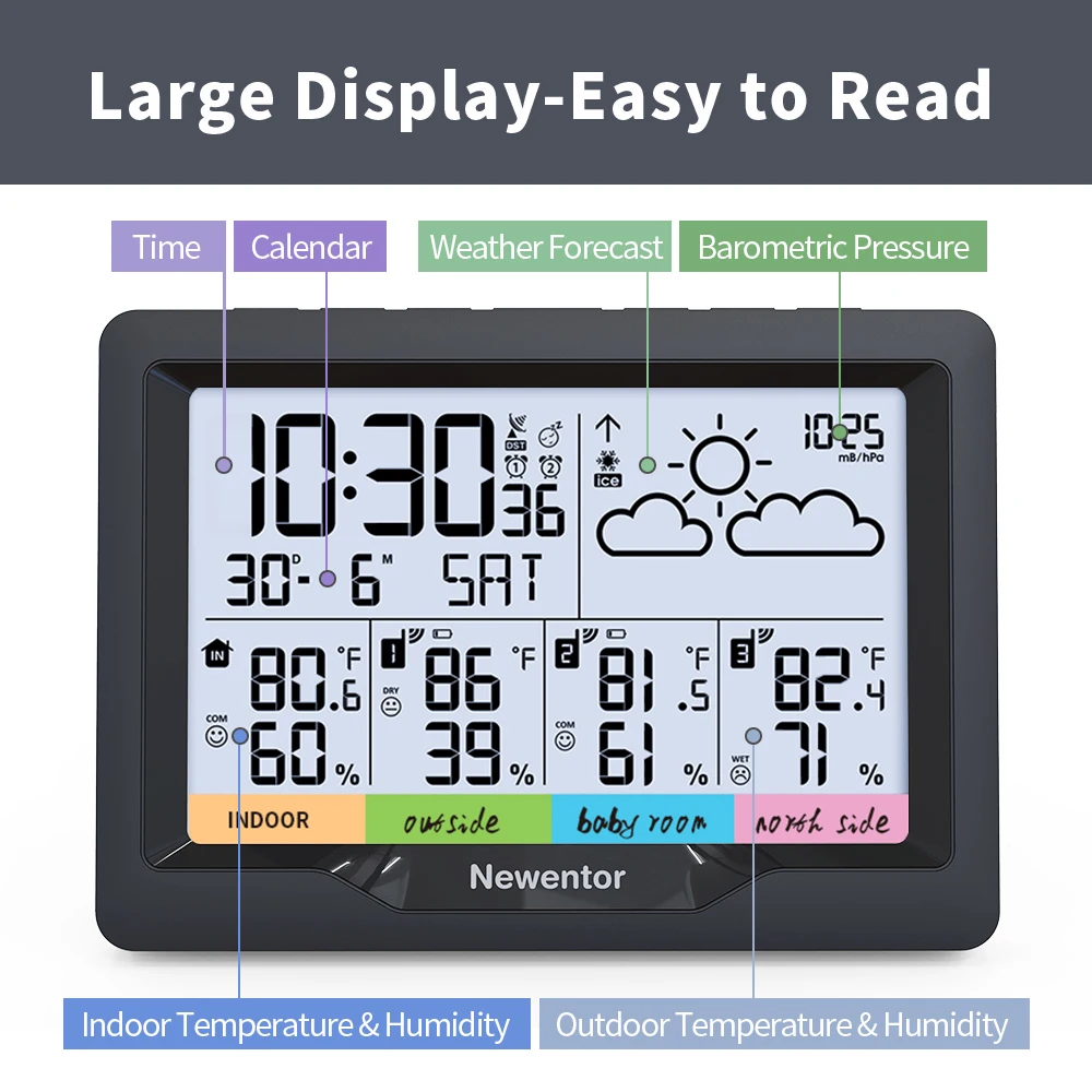 Метеостанция Newentor Q5 с 3 датчиками, датчик влажности и температуры, беспроводной цифровой гигрометр для дома и улицы