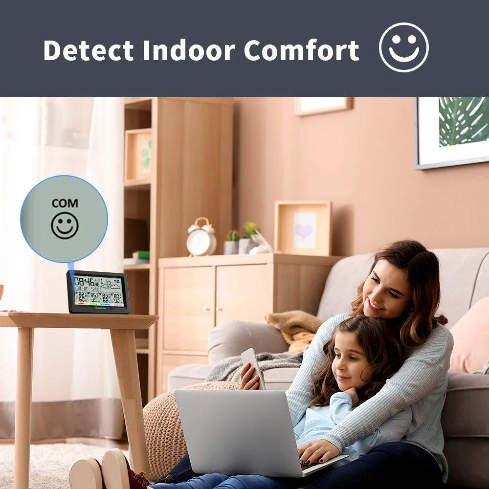 PRACTICAL REMOTE TRANSMISSIONS: The sensors connect to the weather station via radio, then the outdoor temperature and humidity are determined locally via the radio transmitter and displayed on the base. The sensors have a range of up to 60m in an open area, enough to cover your daily needs.